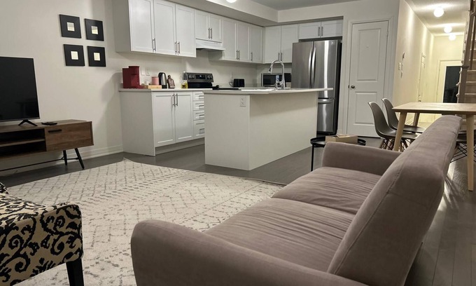 Enjoy your stay at this beautiful newly built, modern, 3 Beds, 2.5 Baths, that comfortably sleeps 6 people and is steps away from Lake Ontario. This house is perfect for short and long-term stays.