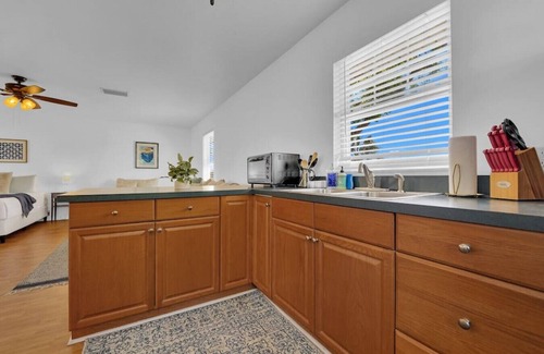 Welcome to Lakeside Studio, where you can enjoy views of Maria Sanchez Lake. This centrally-located gem offers easy access to all that St. Augustine has to offer. Located on the second floor, this charming studio cottage in Historic Downtown St. Augustine includes a cozy balcony that overlooks the serene lake. Make the most of the provided bikes and embark on a leisurely ride to downtown, where you`ll discover an array of local shops and restaurants. The beach is just a 10-minute drive away!