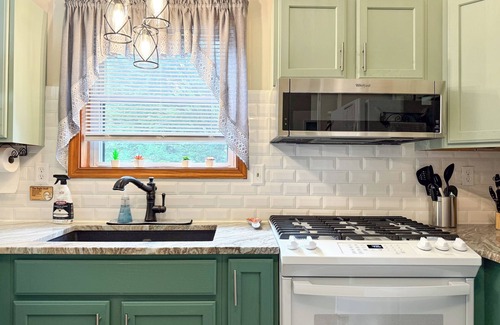 ● Kitchen: Cook up a storm in the updated kitchen featuring granite countertops, a gas range, dishwasher, full-sized refrigerator, coffee maker, Keurig, kettle, toaster, crockpot, and fully stocked cookware, flatware, tableware, and serveware.