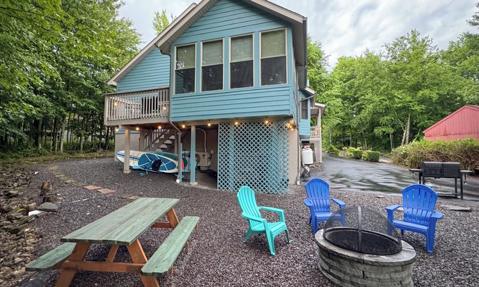 Escape to The Quiet Pond Lookout, a cozy 3-bedroom, 2.5-bath modern farmhouse nestled in a private, gated community in the Poconos. Perfect for families and friends, this 2600 sq ft home features two fireplaces—one on the main level and one on the lower level—plus an all-seasons sunroom with stunning lake views. Enjoy fall foliage, festivals, nearby apple and pumpkin picking, or explore scenic trails. With access to community amenities like parks and golf, it's the perfect fall getaway!