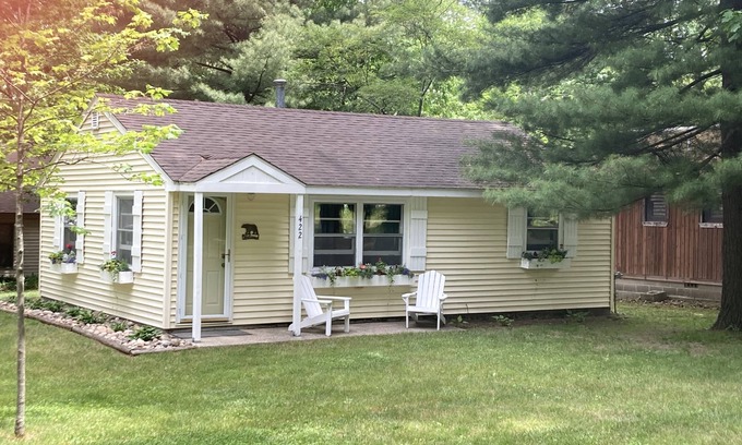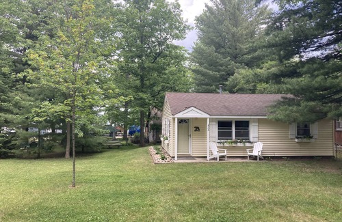 Cute, cozy and clean describes this quaint "up north", bear log furniture decorated cottage. It is a short, TWO BLOCK walk or drive to the township beach, park and beautiful Higgins Lake. 1/4 mile to the boat launch. The cottage has 2 bedrooms: 1 queen and the other with twin beds, as well as a lazy boy queen sleeper in the living area. It comes fully furnished except for sheets and towels. Bathroom with shower. Enjoy your own campfire, charcoal grill and picnic table in the large, private yard with lake view. The yard is large and can accommodate 2 vehicles and/or a large boat. There is plenty of room for the kids to run around, ride bikes or walk to the local ice cream/candy store. Internet and Cable. No pets! No smoking! Rental rate is one of the cheapest at the lake! Private setting! Cable and internet.
