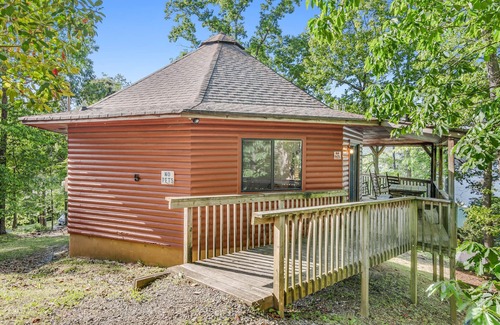 10 cabins are available at Carters Lake Marina & Resort. This is cabin 5, an octagonal cabin with a loft and great views of the lake and marina. 2 bedrooms, each with 1 double bed, 1 bathroom plus a loft with 2 twin beds.