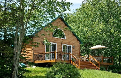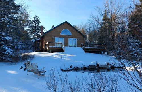 3 Bedroom log-sided cabin with large deck facing Woodford Lake with beautiful lake view. High ceiling Great Room with lots of space, private onsite parking, in quiet lakeside community - complete with 4 kayaks and a canoe. Wood stove and outdoor firepit and gas fireplace unit, lots of cupboard space. Beautiful!