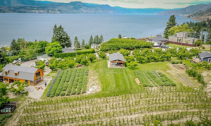 Our ideally located, self-contained private guest cottage provides stunning views of rolling countryside, orchards, vineyards, and Okanagan Lake. In the middle of a fruit tree and lavender farm, perched just above the village, our cottage is a perfect place to get away from it all but with everything you need within a 5-minute walk.