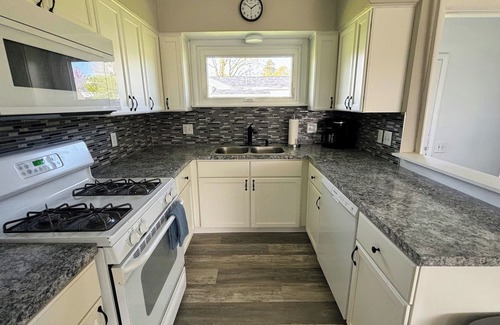This 3-bedroom, 1-bathroom home features a fully equipped kitchen complete with refrigerator/freezer, oven, microwave, dishwasher, toaster, and coffee maker. Recently refurbished with upgraded décor and outdoor patio furniture, it comes fully stocked and prepared, ensuring your comfort whether you plan to unwind indoors or embark on outdoor adventures. Onsite amenities include a fire pit, propane grill, and two kayaks for guest use. The basement offers additional entertainment with ping pong, foosball, and a dart board.