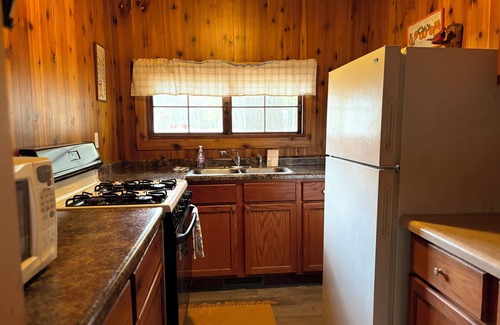 With amenities like an electric heater to keep you warm, this wonderful retreat is the perfect place for guests to unwind and relax. We think our place will help you experience everything Hilltop Cottages Resort has to offer. Watch the sunset from your screened-in front porch or dine out on your porch with a small dining table perfect for four. Grill out and have a picnic with your charcoal grill and picnic table. This cabin is perfect for all of your summer activities.