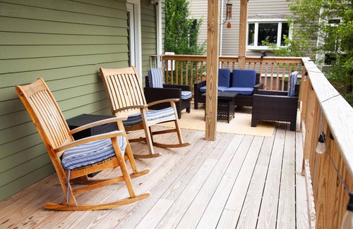 ☀️ Spacious Deck – Cozy seating with tree-lined views