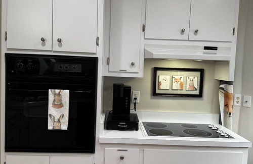 You will love this quiet cul-de-sac street and proximity to downtown historic Thomasville, Ga. After entering the foyer, you'll see a large cathedral ceiling dining and living room and also open to this area is they kitchen with an eat-in table and bar seating. I supply basics in the kitchen but, if you’re coming to do a lot of cooking or baking, you’ll need to buy your own supplies and take them when you leave. The appliances, pots and pans are here but the gourmet cook or baker will need to bring all of the extra gadgets. All hardwood or tile floor throughout. Master bedroom has private bath with large shower. Second bedroom has a window seat overlooking the small residential lake. Second bath has a tub/shower combo. Third bedroom /office offers a twin bed and plenty of workspace and privacy. Full size, extra capacity washer and dryer! Flatscreen Roku TV's in master bedroom and living room with Google chrome cast. French doors lead out to covered patio and large deck with pergola and charcoal barbecue grill. Home also has a one car garage with remote and more parking in the driveway. Please let me know what brings you to our area and names and ages of guest.