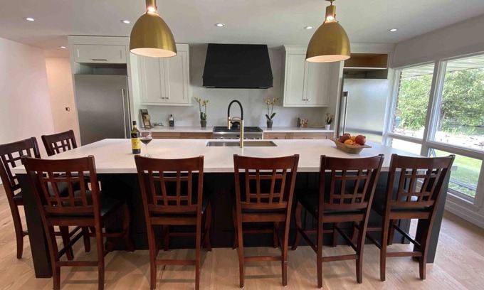 Lambs Landing is an upscale waterfront luxury vacation home only 1.5 hours from Toronto in Fenelon Falls on the Trent Severn Waterway. 450ft waterfront with sandy and shallow beach access allows for swimming for little ones and adults alike. 2.5 acres of private park like setting. This property offers the best of both worlds - waterfront and easy walking distance to downtown to local restaurants, brewery, groceries and locks. A beautiful year round setting for large family gatherings.