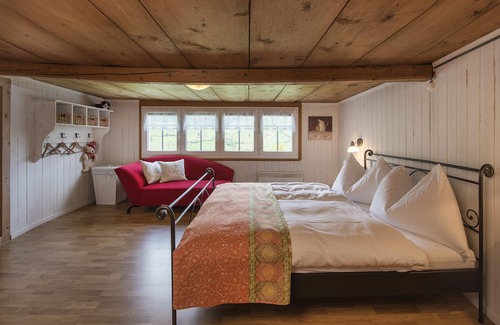The lovingly renovated Toggenburg farmhouse is situated on an elevated position above Alt St. Johann. Here you not only enjoy the breathtaking view of the Säntis, the Schafberg and the rest of the local mountain world, but also the exclusive and quiet location. In winter you can drive directly from the house onto the slopes - or in the warm season you can enjoy the mountain summer on the wonderfully large terrace. Stylishly furnished with a tiled stove, Landhuus Toggi combines old and modern building elements. Inernet is not available, which is definitely good for the whole experience. However, mobile phone coverage is given. In the Landhuus Toggi you will not only find a modern kitchen with everything you need for cooking, but also space for a maximum of 6 people. It has 3 bedrooms. The road is cleared in winter, but a car with 4x4 drive is an advantage. Up to 4 parking spaces are available in front of the house. Actually there is not much left to say, except: The Landhuus Toggi is an experience. A beautiful house with an even more beautiful view that offers everything for an unforgettable mountain holiday, whether in winter or summer. Nature and the mountains are waiting for you right at your doorstep. Pets are not allowed.