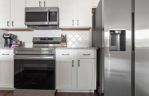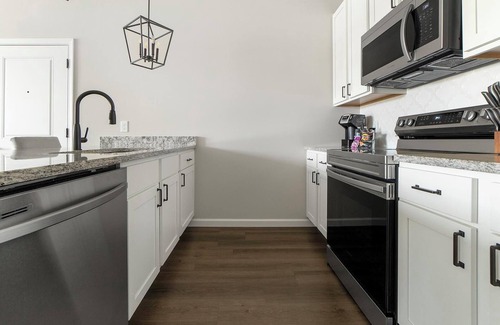 Stay in the heart of New Albany with all the comforts of home at Camden. Perfect for monthly or extended stays, each fully-furnished apartment includes a full kitchen with granite countertops, spacious cabinetry, and in-unit laundry. Enjoy resort-style amenities like a heated pool and hot tub, Peloton-equipped fitness center, Starbucks coffee bar, and golf simulator.