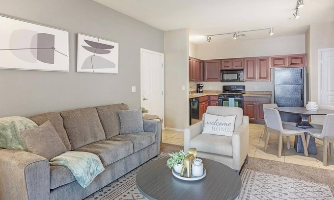 Discover your home base near Downtown North Las Vegas at Sonata, ideally located near I-15 and Nellis AFB. Each fully-furnished home features a full kitchen with all-black appliances, stylish furnishings, and fast WiFi. Enjoy resort-style amenities including a sparkling pool, spa, state-of-the-art fitness center, resident lounge, BBQ picnic area, and a tot lot for the little ones.