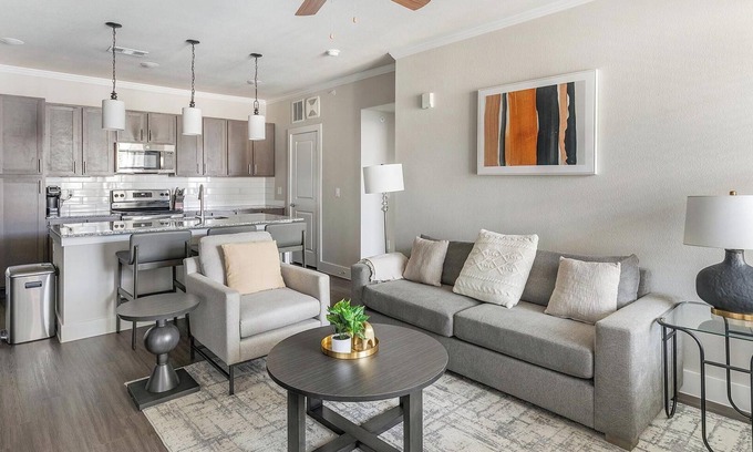 Ariza Research offers fully-furnished homes perfect for monthly or extended stays. Our spacious apartments come complete with full kitchens, in-unit laundry, and all the comforts of home. Recharge with resort-style amenities including a sparkling pool, yoga studio, and indoor/outdoor coworking lounges. Plus, enjoy premium extras like a dog spa, EV charging stations, and access to nearby greenbelt trails.