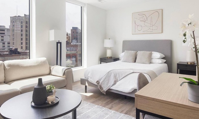 Stay in the heart of it all at eXchange! Steps from Detroit’s best sports, dining, and riverfront views, eXchange offers fully-furnished apartments perfect for short-term visits, business trips, or extended stays. Enjoy open-concept layouts, full kitchens with granite countertops, and floor-to-ceiling windows. Unwind in the club lounge, stay active in the 24-hour fitness center, or connect with neighbors at resident events.