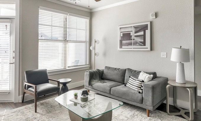 Ariza Research offers fully-furnished homes perfect for monthly or extended stays. Our spacious apartments come complete with full kitchens, in-unit laundry, and all the comforts of home. Recharge with resort-style amenities including a sparkling pool, yoga studio, and indoor/outdoor coworking lounges. Plus, enjoy premium extras like a dog spa, EV charging stations, and access to nearby greenbelt trails.