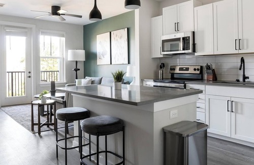 Step into comfort and style at Cadence Sugar Hill, your ideal stay for flexible, fully-furnished monthly or extended visits. Our spacious apartments feature full kitchens with stainless steel appliances, quartz countertops, and kitchen islands designed for cooking and entertaining. Enjoy nine-foot ceilings, wood-style flooring, and in-unit washer/dryers. Relax poolside at the resort-style pool, flow through yoga classes, or work from private office spaces.