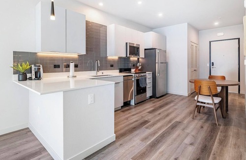 Stay steps from Midtown and just minutes from downtown. Emory at RED places you at the center of Reno’s most vibrant neighborhood. Ideal for short-term, monthly, or extended stays, our fully-furnished apartments feature full kitchens with quartz countertops, stylish furnishings, and in-unit laundry. Enjoy resort-style amenities including a heated pool and spa, outdoor movie screen, yoga studio, coworking lounge, pet spa, and a 24/7 indoor-outdoor fitness center.
