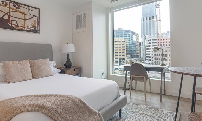 Stay in the heart of it all at eXchange! Steps from Detroit’s best sports, dining, and riverfront views, eXchange offers fully-furnished apartments perfect for flexible or monthly stays. Enjoy open-concept layouts, full kitchens with granite countertops, and floor-to-ceiling windows showcasing stunning downtown views. Unwind in the club lounge, stay active in the 24-hour fitness center, or connect with neighbors at resident events.