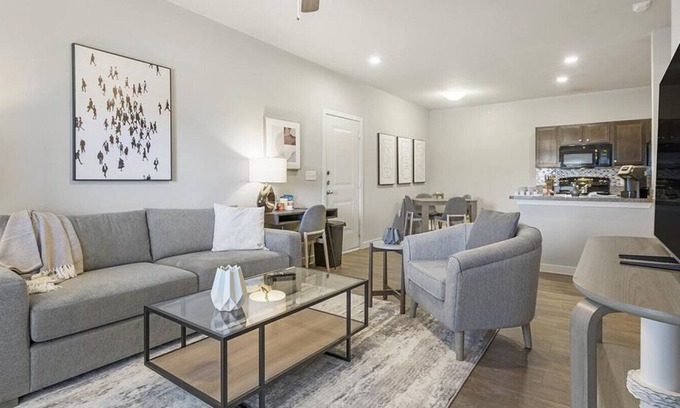 The Anderson at Brooks is a lively property in the Stinson Airport Vicinity neighborhood of San Antonio where Landing offers fully furnished 1-bedroom, 2-bedroom, and 3-bedroom apartments stocked with everything you need to feel at home.