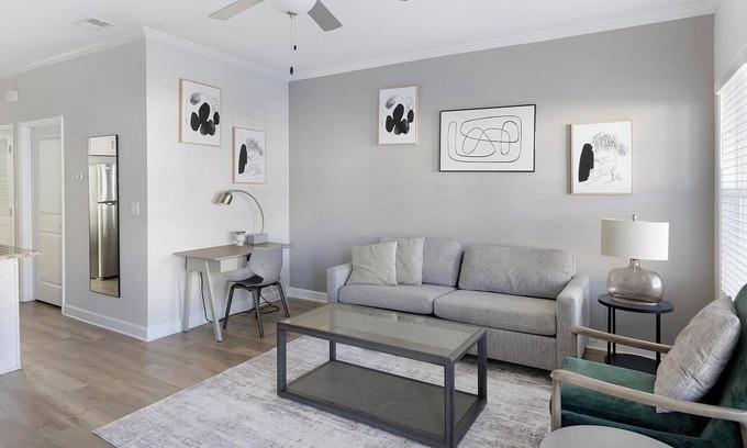 Need a quick getaway or a comfy spot to settle in near Huntsville, AL? The Cottages at Oak Grove Dairy have you covered with fully-furnished apartments just off Highway 231. Perfect for short-term stays, weekend trips, or extended stays, each home includes a full kitchen, in-unit laundry, stylish furnishings, and fast WiFi. Chill by the resort-style pool, break a sweat in the fitness center, or relax by the fire pit.