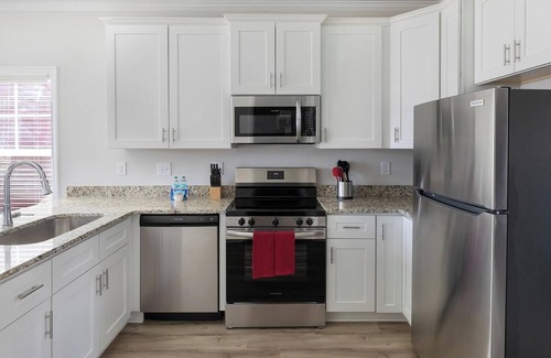 Need a quick getaway or a comfy spot to settle in near Huntsville, AL? The Cottages at Oak Grove Dairy have you covered with fully-furnished apartments just off Highway 231. Perfect for short-term stays, weekend trips, or extended stays, each home includes a full kitchen, in-unit laundry, stylish furnishings, and fast WiFi. Chill by the resort-style pool, break a sweat in the fitness center, or relax by the fire pit.