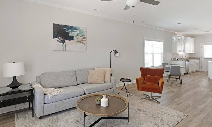Need a quick getaway or a comfy spot to settle in near Huntsville, AL? The Cottages at Oak Grove Dairy have you covered with fully-furnished apartments just off Highway 231. Perfect for short-term stays, weekend trips, or extended stays, each home includes a full kitchen, in-unit laundry, stylish furnishings, and fast WiFi. Chill by the resort-style pool, break a sweat in the fitness center, or relax by the fire pit.