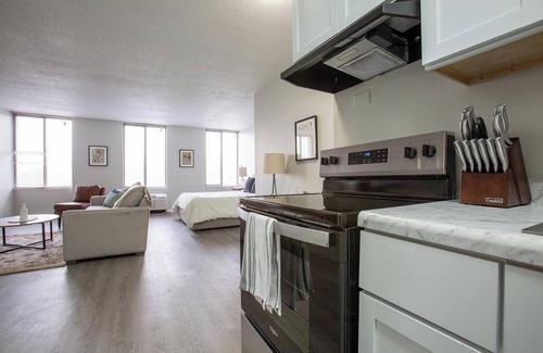 Stay in the heart of downtown Fort Wayne at Three Rivers! Perfect for flexible stays of any length, our fully-furnished apartments feature spacious layouts, full kitchens with modern appliances, and stylish furnishings. Enjoy resort-style amenities including a sparkling pool, 24/7 fitness center, billiards lounge, and dog park.