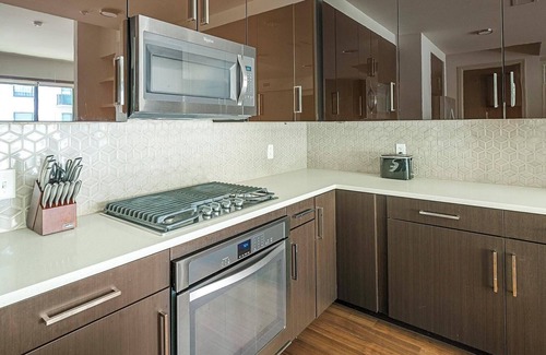 The Hayworth puts you steps from Houston’s upscale Tanglewood neighborhood, with great dining and green spaces nearby. Perfect for short-term visits or extended stays, our fully-furnished apartments feature full kitchens with quartz countertops, stainless steel appliances, stylish furnishings, and fast WiFi. Outside your door, enjoy resort-style amenities including sand volleyball and tennis courts, a poolside grilling area, fitness and business centers.