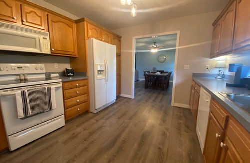 Your Vine Grove adventure begins at this 3-bedroom house! King bed, queen bed, and full bed for guests to have plenty of space to relax. Enjoy the AC, heating, and WiFi during your stay. The 2 bathrooms come equipped with a hair dryer, one tub and shower. There is a large, fenced yard with gas bbq on rear deck. We look forward to hosting you at our place. This is a home for comfort; please enjoy!