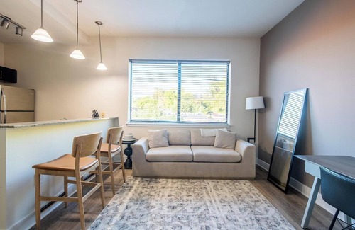 Stay in style at Cedar Broad in downtown Richmond, ideal for flexible, monthly, or extended stays. Each apartment features open layouts, full kitchens with granite countertops, stainless steel appliances, and in-unit laundry. Relax with skyline views from the rooftop mezzanine, lounge by the pool, or work out in the 24-hour fitness studio. Just steps from Main Street Station, Jefferson Park, and local favorites like The Hard Shell and Grisette, you're surrounded by the best of the city.