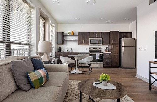 Small-town charm meets modern luxury at McCord Square, your fully-furnished home base in Downtown McCordsville. Each apartment features a full kitchen with stainless steel appliances, fast WiFi, in-unit laundry, and stylish furnishings. Outside your door, unwind at the rooftop lounge, break a sweat in the fitness center, or work remotely in the cozy WFH lounge. Just steps away, explore local gems like Daniel’s Vineyard, parks, cafes, and farmers markets.