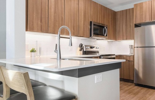 Stay minutes from Downtown Kyle and Plum Creek Golf Course at Brick and Mortar District, your stylish, pet-friendly retreat just off I-35. Perfect for flexible, monthly stays, each fully-furnished apartment includes a full kitchen, stainless steel appliances, and granite countertops. Enjoy resort-style perks like a rooftop lounge, Zen garden, fitness center, and dog spa, or connect with neighbors at La Verde Park, featuring sand volleyball, hammocks, a playground, and an amphitheater.