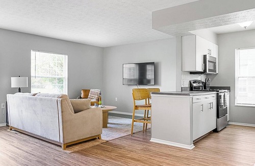 Experience downtown Dayton at The Landing, perfect for quick getaways, weekend trips, or extended stays. Our fully-furnished apartments include full kitchens, in-unit laundry, and fast WiFi for a seamless stay. Take in river views, work from WiFi-equipped lounges, or hit the 24-hour fitness center. With gated parking, controlled access, and pet-friendly spaces, comfort and convenience come standard.