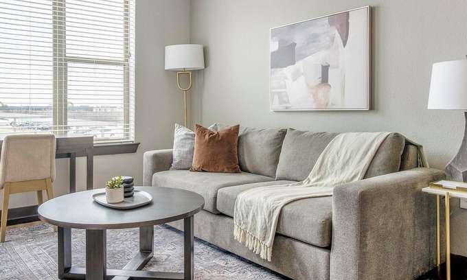 Stay minutes from Downtown Kyle and Plum Creek Golf Course at Brick and Mortar District, your stylish, pet-friendly retreat just off I-35. Perfect for flexible, monthly stays, each fully-furnished apartment includes a full kitchen, stainless steel appliances, and granite countertops. Enjoy resort-style perks like a rooftop lounge, Zen garden, fitness center, and dog spa, or connect with neighbors at La Verde Park, featuring sand volleyball, hammocks, a playground, and an amphitheater.