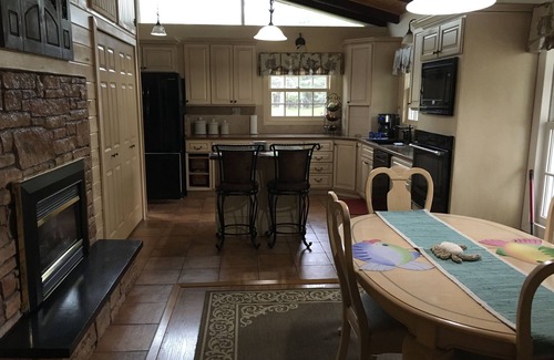 An updated furnished kitchen…. Amazing sunsets overlooking the lake…… A bunkhouse that sleeps four, children’s favorite place.….. A change house by the lake for swim suits and beach towels…. A large yard Certainly! Here’s a warm and inviting message for your VRBO guests: