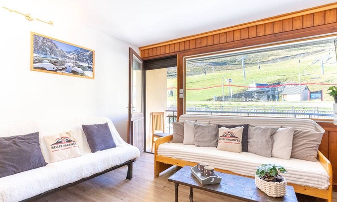 Idéalement placé pour un ski premium, cet appartement traversant, fonctionnel, clair et lumineux, vous permettra grâce à ces trois balcons de suivre le soleil Pyrénéen du matin au soir.