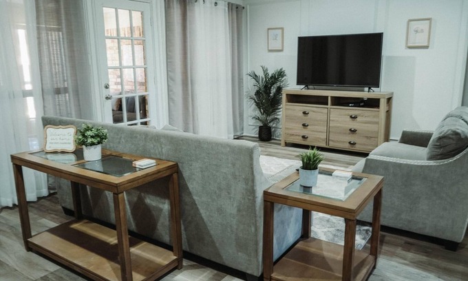 Located in Abilene, this lovely house has plenty of space for large groups. With 4 bedrooms, plus a sunroom, including 2 queen beds, 2 king beds, 1 full bed, 4 twin beds, plus both twin & full size floor mattresses, there's plenty of space for all guests. Note there is a $10 per day/per person fee after the first 9 guests. The 3 bathrooms are equipped with amenities like a bathtub, plenty of towels, hair dryer, and shower. You'll find everything you need here, from fully stocked kitchen, washing/drying machine to WiFi. The property offers central heat/air conditioning and our 4th bedroom has its own AC window unit. We’re happy to assist you with any questions you may have.