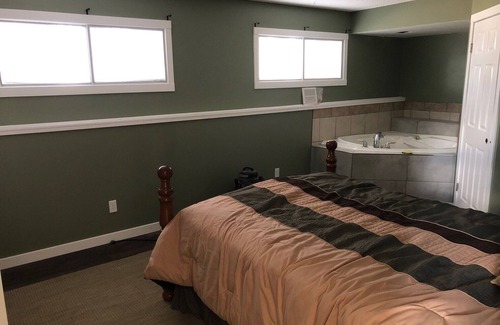 2nd- Large bedroom on Ground level. includes Jetted Tub in the bedroom and 2 pc washroom just outside the door, and full sized washer and dryer. Small kitchen with bar table, and Laundry.