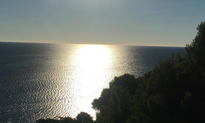 A fully equipped lounge / kitchen area and a loggia with dining area overlooking the wooded park and small sea view