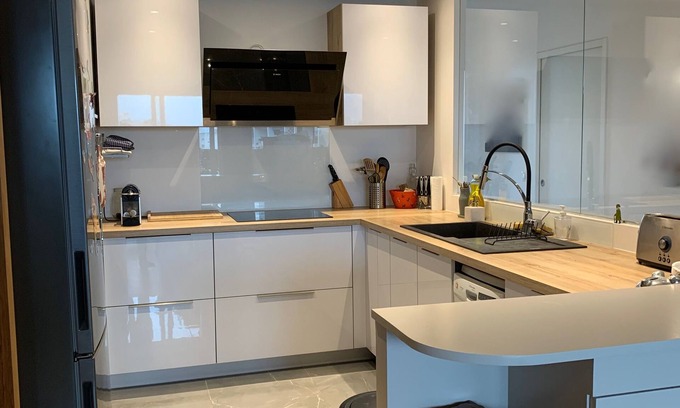 The accomodation is modern, bright and comfortable for a family or a group of friends who want space. There are 3 bedrooms (2 queen size beds and a single bed), 1 shower room and a bathroom, 2 WCs, 1 of which is separate.