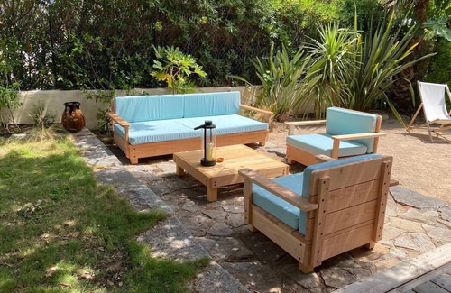 New house of 170 m2 5 bedrooms, 2 bathrooms, plus an outside shower, and an outside bathroom on the tropezienne on the 2nd floor. The house is fully air conditioned.