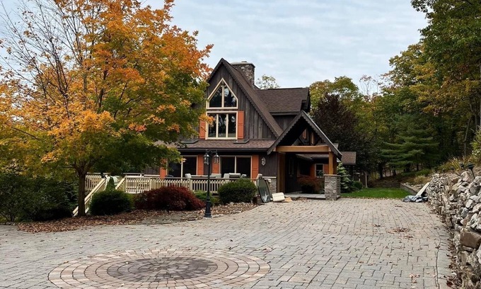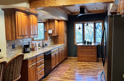 Looking for a peaceful escape to nature, not too far from the excitement and energy of Penn State University? This is the house for you. The large open living room/family room area are perfect for spending time with loved ones and friends while watching a game on the big screen tv. Or cook a meal in the gourmet kitchen while chatting with buddies in the lounge area. The main floor also includes a bedroom with a queen-size bed and tv, an office featuring a pull out love seat and futon, as well as a dining room, and bathroom are also located on this level. Upstairs you’ll find a breathtaking master bedroom with vaulted ceilings, large windows with gorgeous mountain views and a spectacular master bath featuring heated towel racks and a jetted shower. The upstairs also features a second master, two more bedrooms, and a third bathroom. All of this along the side of a beautifully landscaped hill and only 12 miles to Beaver Stadium! Twin Fox Manor is also just 13 miles to Juniata College and 35 minutes to Raystown Lake. We are close to hiking and snow mobile trails at Whipples Dam State Park, along with swimming and fishing areas.