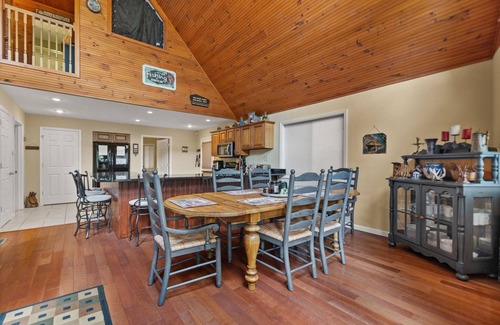 This spacious three-story cabin at Deer Water Lake features 4 bedrooms and 3 full baths, accommodating up to 12 guests. Enjoy amenities like a hot tub, Wi-Fi, gas and charcoal grills, a fire pit, and two docks with canoes for fishing and swimming.