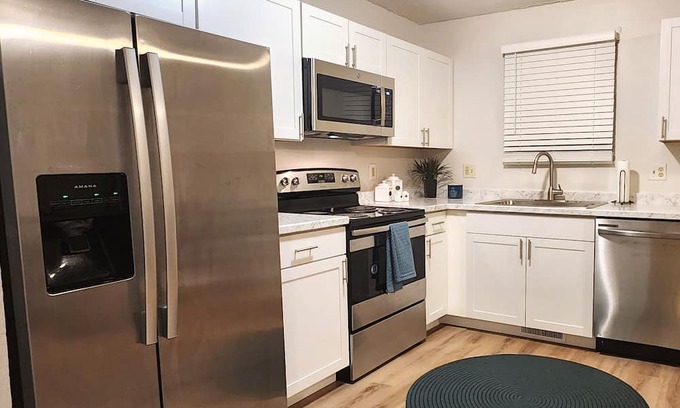 This spacious upstairs apartment (in a house), has all-new carpet, a brand-new kitchen, and an updated bathroom. Centrally located in Vernal, and close to main street, get anywhere you desire quickly and easily. Includes wifi and in-house laundry. Sleep 4 comfortably with 2 queen beds. The couch can also be used as a place for one person to sleep. Clean and family-friendly.