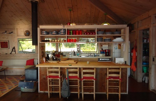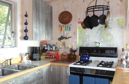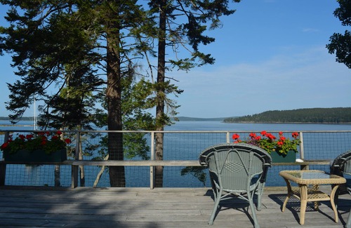 Check out our 100% 5-star reviews! Situated on 10 acres, and nestled in the trees on a private road, this large house with adjoining apartment is right on the ocean, with almost as much room on the decks as indoors, and the fabled rocky shore just yards away. Walk down to the dock and swim in the invigorating bay water, or explore the fascinating worlds of the tidal pools. Come by boat or bring one, there are stout moorings available, boat ramps nearby, and kayaks are launched easily off the dock. As close as you can get to Acadia National Park, there's hiking, boating, fishing, swimming, rock climbing, kayaking, horseback riding and carriage rides in the park. Wonderful for any group, family, friends or a even a company retreat. With a main house and apartment both built with open plan layouts, and connected through a double doorway, it can provide both room to spread out and a quiet space for those in your party who may appreciate a break from the hubbub. With 2 kitchens and 2 washers and dryers it easily meets the needs of larger groups.