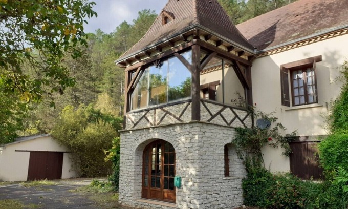 A beautiful traditional French country home arranged over 3 floors covering over 300sqm. Set against a mountain covered in woodland the air is fresh and the views stunning. There is a lawn garden ideal for children to play.Close to Belves with shops bars and restaurants and saturday market. Sarlat , Castle Naud , Domme, Les Eyzies and Beynac are 30 mins away. There is lake fishing neary and canoing. The house is in an ideal position for all the Dordogne tourist attractions