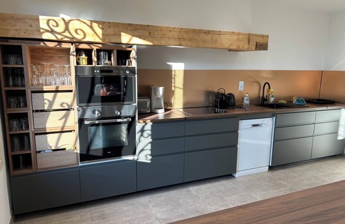 In the kitchen, in addition to a complete crockery you will find dishwasher and refrigerator freezer, electric oven and microwave, coffee maker kettle toaster ...