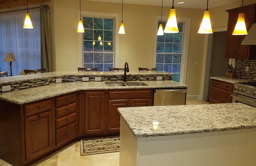 Gorgeous, newly built 4 bedroom, 3 1/2 bathroom home only 20 minutes to Penn State and only 10 minutes to historical Bellefonte. This home is located in a country setting on 4 acres. The master bedroom has a king size bed with a master bath - separate shower and tub. There are three bedrooms upstairs - two bedrooms have queen size beds, the third has a full size futon. There are also two full bathrooms upstairs and a half-bath on the first floor. The gourmet kitchen is fully operational and includes all dish wear and utensils. Property includes washer and dryer, 4 large screen TVs and WiFi. The basement is finished with a bar, pool table, dart board, fireplace, and an additional half-bath. The property will accommodate 6+ vehicles.