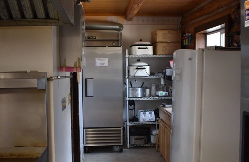 This building has two cabin spaces on the main floor independent of each other. Each side is equipped with a queen bed, couch, and 2, two-person bunks. Each of the main floor rooms is connected to its own bathroom with 3 sinks, 3 toilets, and 2 shower stalls. The upper floor has 10, two-person bunks and share the downstairs bathrooms. This building is equipped with in-floor heating for the winter.