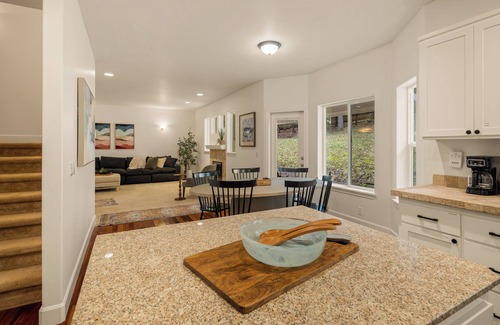 10-15 minutes to O of U, Autzen, and Hayward field. Enjoy hiking at ridgeline trail systems and the fun vibe of a variety of hip Eugenean restaurants nearby. Sip coffee on the upper veranda with breathtaking views, relax in the huge hot tub, lounge by the fire, play ping pong, work out, or chill together watching the 85 inch TV with bar!